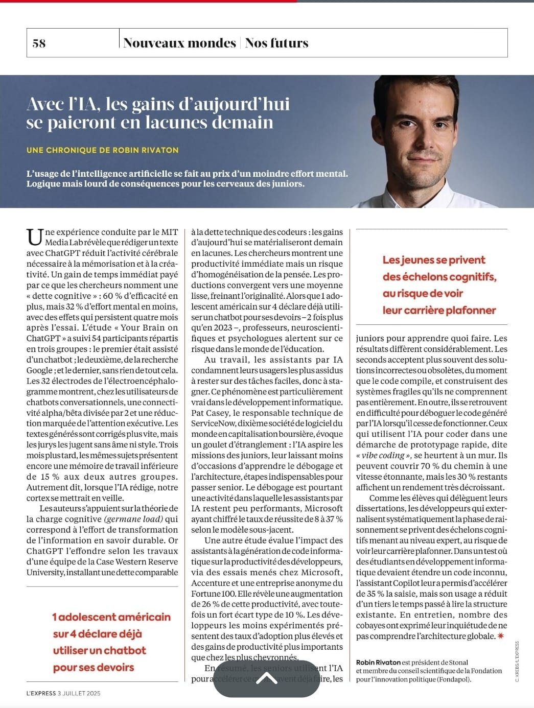 The authors ground their findings in the theory of germane cognitive load—the mental work that converts information into durable knowledge. ChatGPT collapses that load, argue researchers at Case Western Reserve University, installing a liability akin to programmers’ technical debt: today’s gains will be repaid tomorrow in gaps. Productivity soars, but—as The New Yorker notes—thought converges toward a bland average, smothering originality. Already one American teenager in four admits using the chatbot for homework, twice the share in 2023; teachers, neuroscientists and psychologists are sounding the alarm.